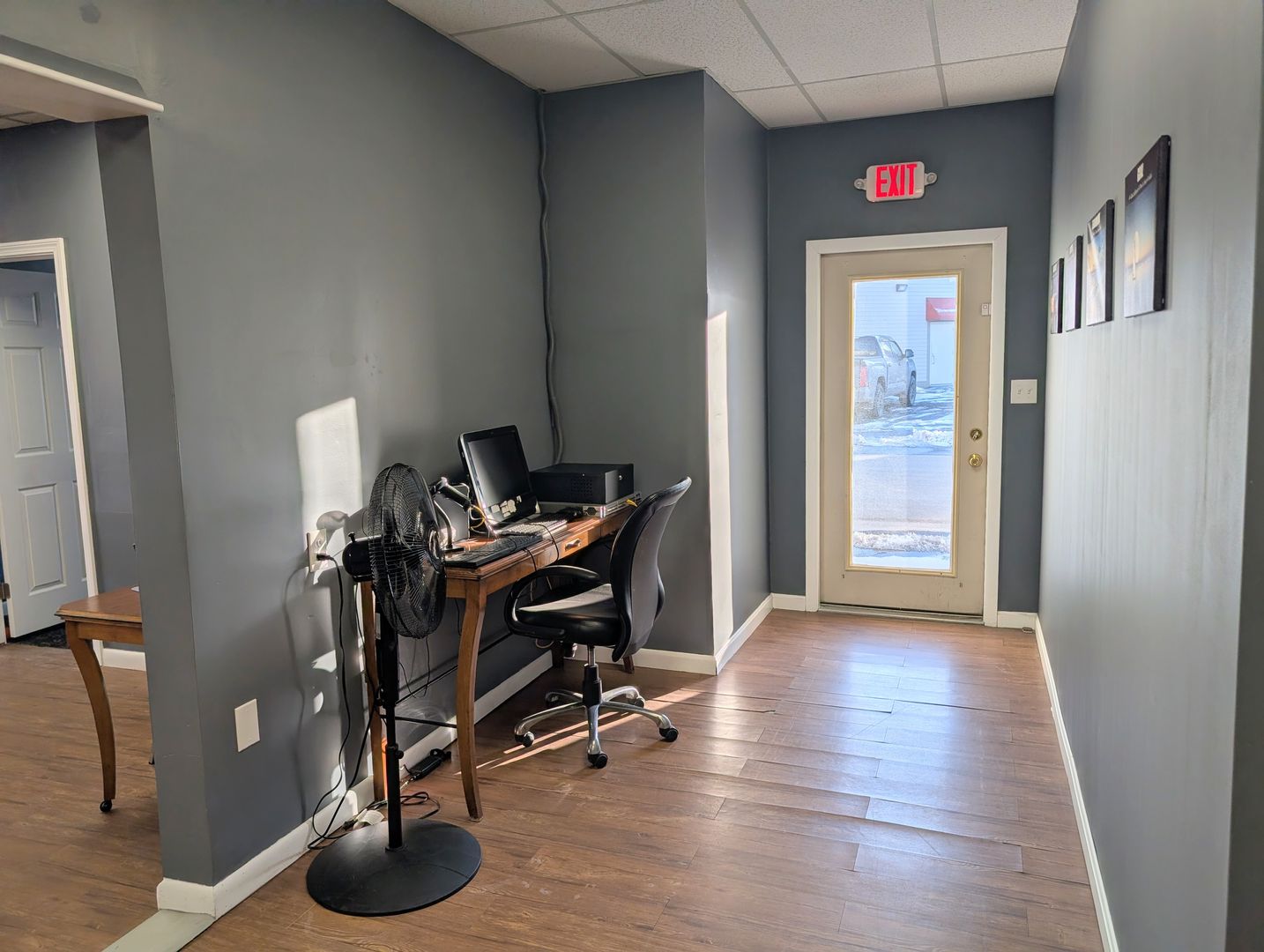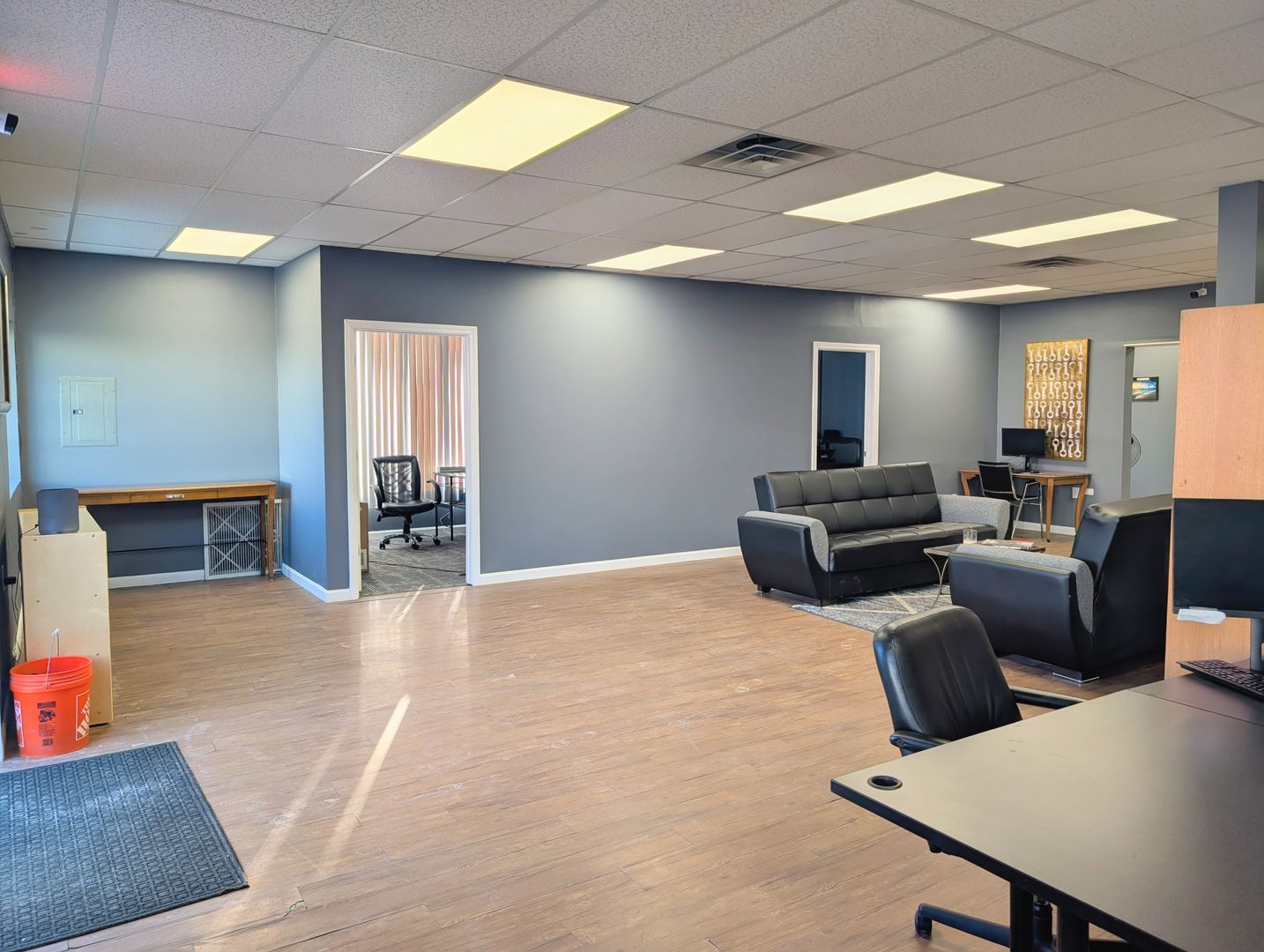 Conveniently located just off Hammond Street in Bangor, with easy access to the highway; 15 Perkins St is a ground-floor spacious commercial office suite with 4 private offices, large reception area, private bathroom, and all utilities (heat, hot water, and electric) included. There is private entry, and a large shared parking lot. WiFi could be included for an additional $50.00 per month.