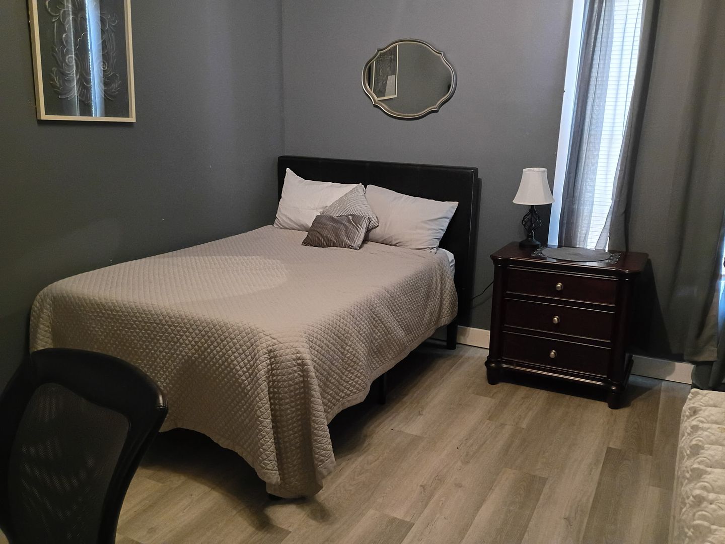 Fully furnished, full sized bed, all utilities included - heat, hot water, wifi. Shared kitchen and bath.